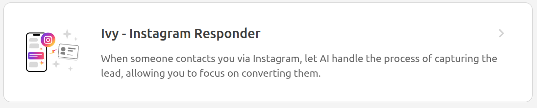- An Instagram AI Agent: This is the AI Agent that will be used to interact with your leads. Be sure to select “Instagram AI Agent - Capture new leads” when configuring the AI Agent.