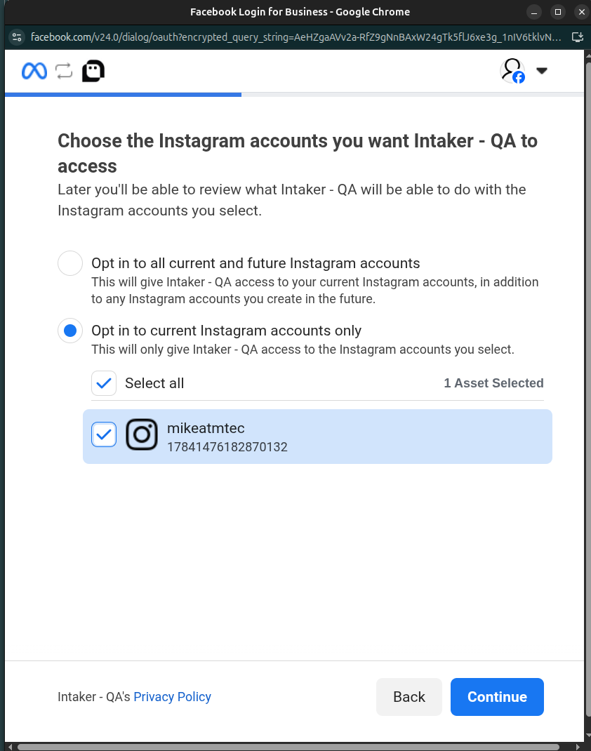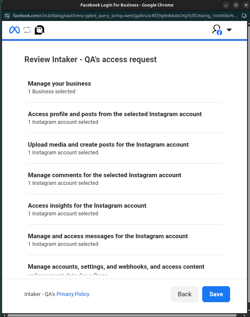 - Review the changes that will be made once you connect your Instagram Professional account to Intaker